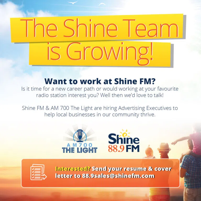 Send your cover letter & resume to 88.9sales@shinefm.com.